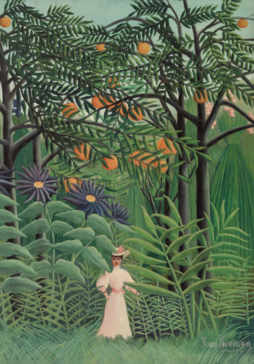 Postcard Henri Rousseau - Woman Walking in an Exotic Forest (detail), circa 1910